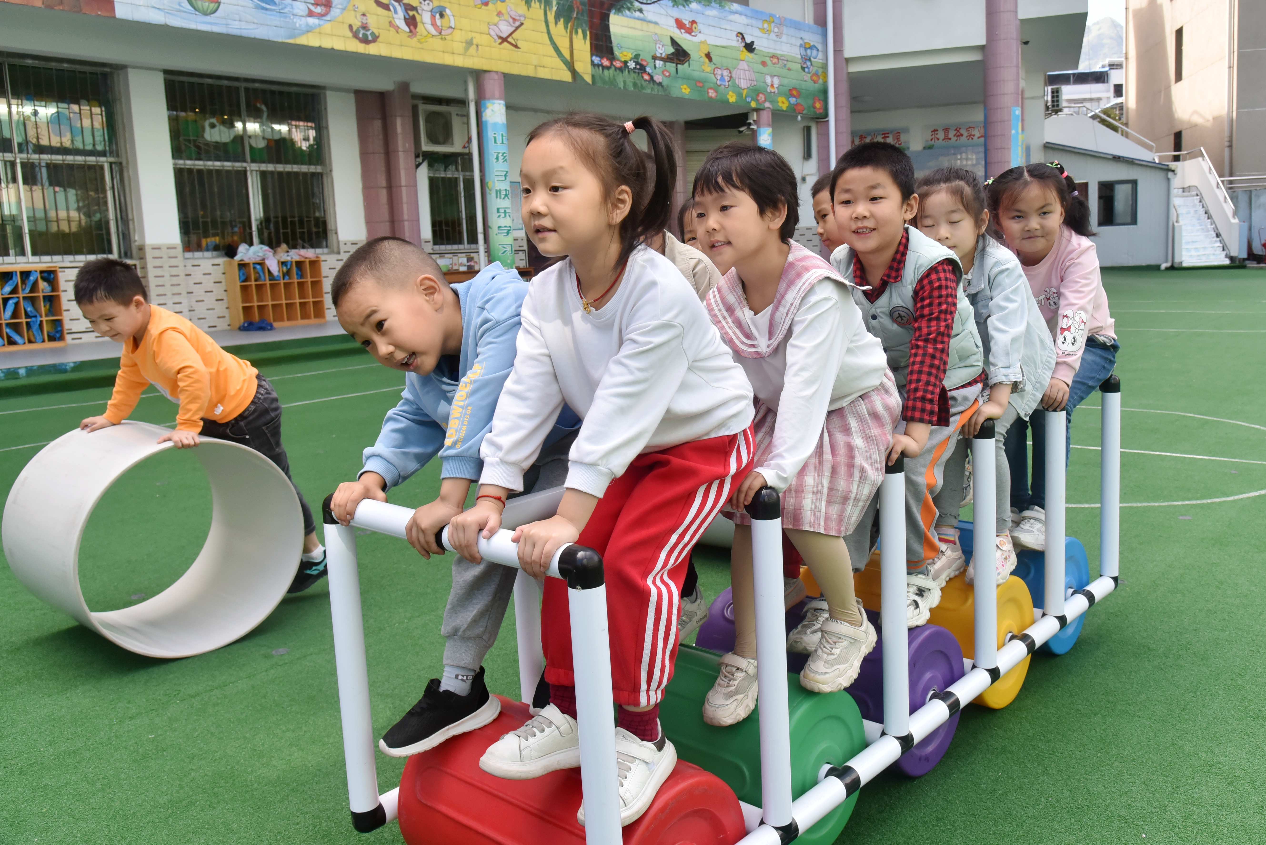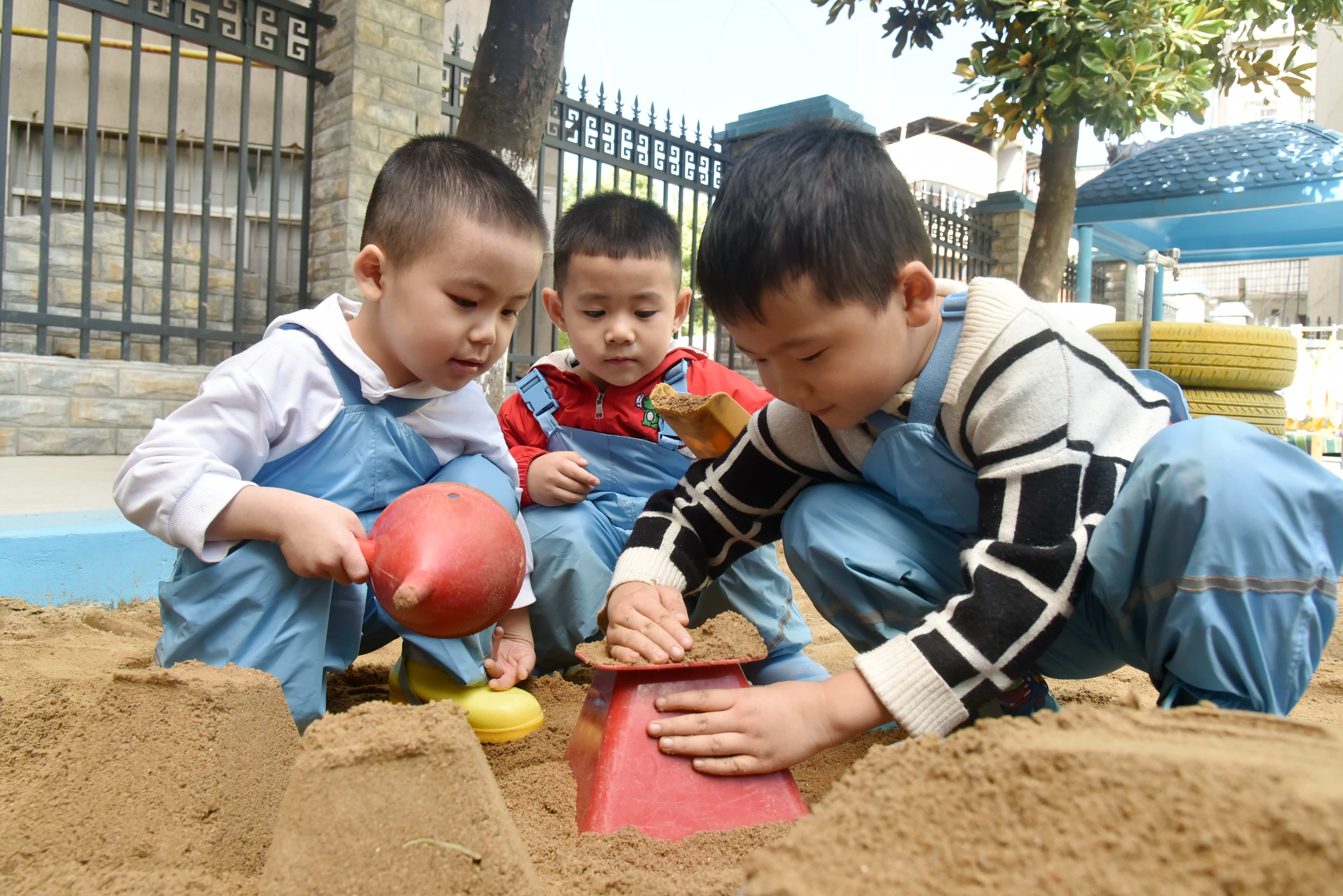 9月29日,县直机关幼儿园学生在沙池区游戏。近年来,该园坚持“快乐学习,健康成长”的教育理念,落实“每天户外活动2小时,其中体育锻炼1小时”的要求,科学开展户外自主游戏,引导幼儿快乐学习与游戏,让孩子们在游戏探索中提升体能、语言、想象、创造等多方面能力。