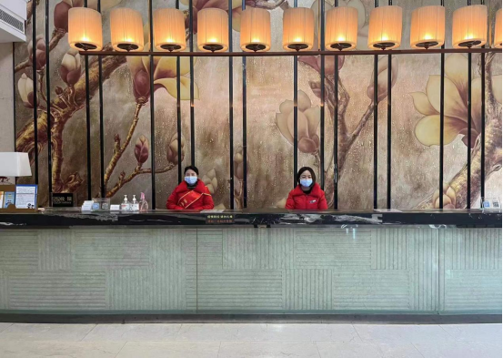 入口处工作人员统一着装,