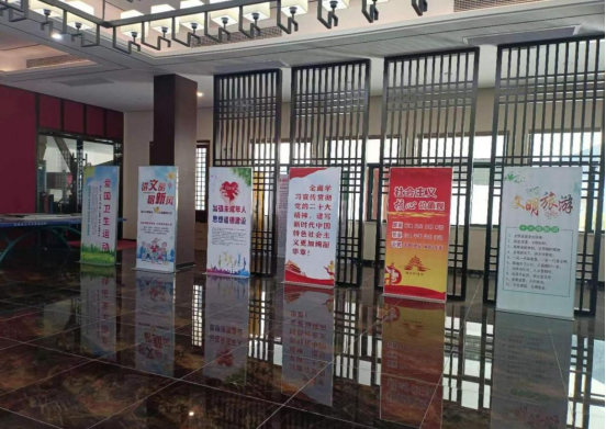 通过景区电子显示屏、宣传展板、公益广告等多种形式传播创文知识,宣讲社会主义核心价值观等内容。
