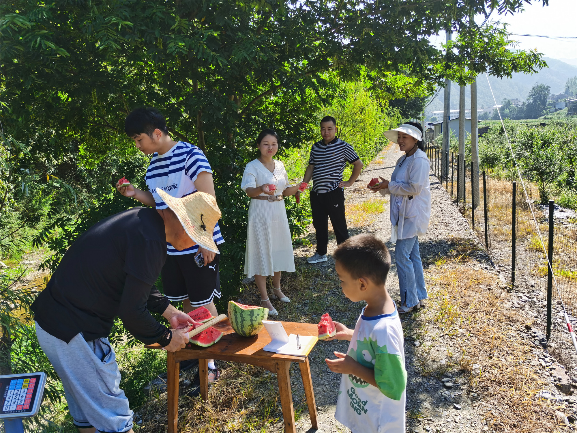 “确实,好久没有吃到过这么正宗的西瓜味了,一口下去,都是甜甜的味道。”中国电建湖北工程驻两峪村工作队长曾令文激动地应和道。今年5月,两峪村在中国电建集团湖北工程有限公司的帮扶下发展石榴园套种西瓜项目,在22亩石榴园中依次播下三批西瓜种子。得益于石榴西瓜套种增强肥效、改善土质、提升土壤利用率等先天优势,8月初,第一批两峪西瓜出园。