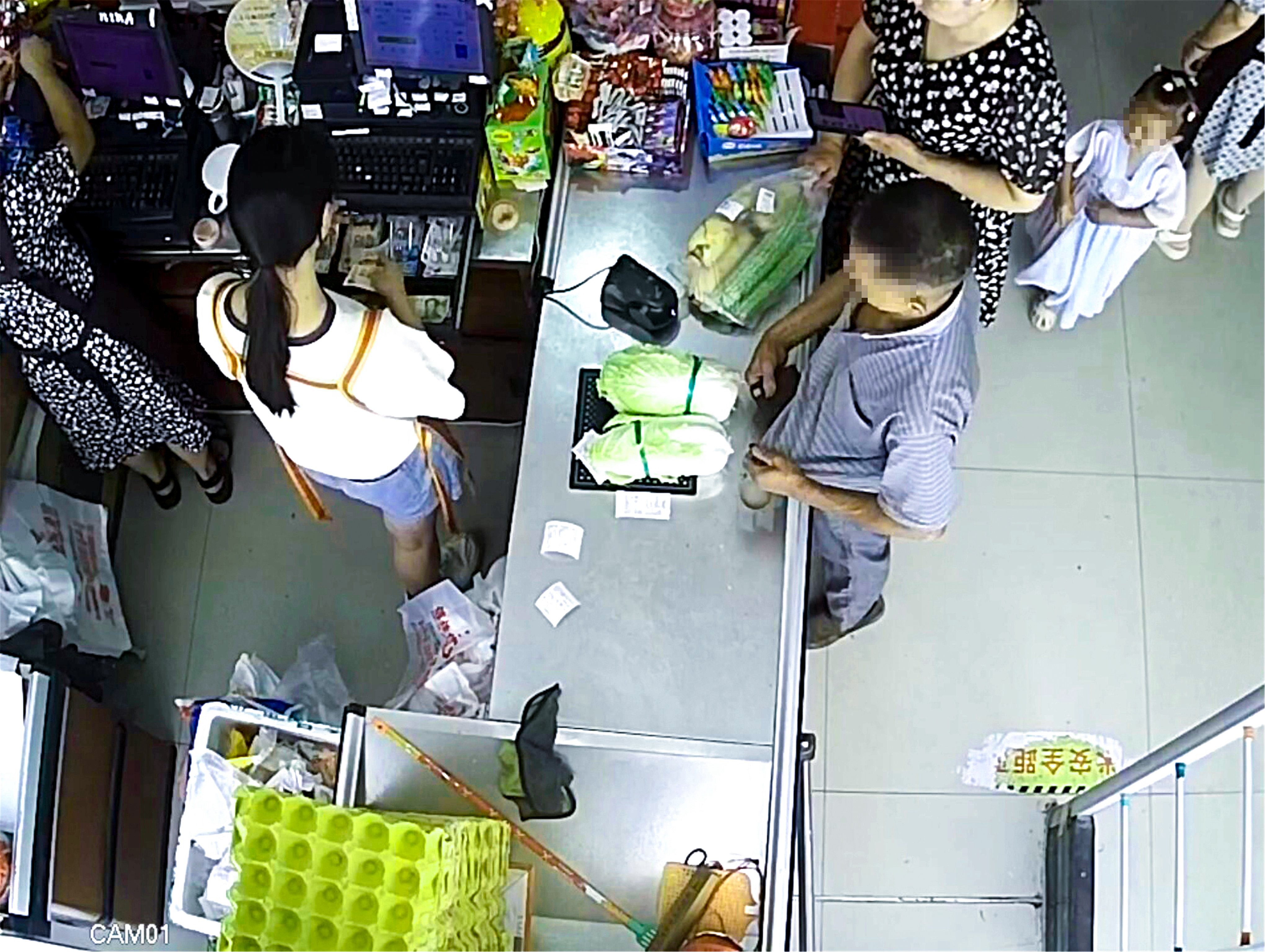 “莫着急,我们去给您找。”民警迅速调取超市视频监控,很快锁定顺手牵羊盗走钱包的中年男子。该男子与吴老伯前后来到超市收银台付款,吴老伯转身离开超市后,男子发现钱包并见财起意,他趁收银员不注意,快速将钱包揣进上衣内夹在腋下盗走。