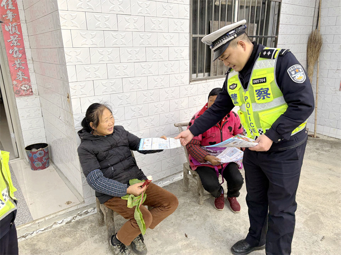 针对老年群体行动不便、信息渠道有限的情况,交警启动“敲门行动”,分片入户走访20余户老年家庭,开展针对性宣传。结合冬季雨雪雾霾等恶劣天气特点,民警耐心讲解出行避险知识,叮嘱老年人夜间穿着亮色衣物,过马路做到“一停二看三通过”,远离大货车盲区,并为独居老人张贴安全提示贴,确保交通安全宣传全覆盖、无遗漏。