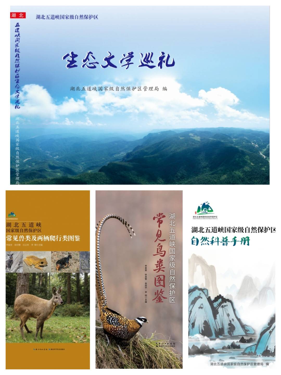 2024年,保护区管理局开展科考丛书编撰工作,经一年多严谨梳理、反复校对,先后完成《湖北五道峡国家级自然保护区常见鸟类图鉴》等4本专业书籍出版。丛书内容详实、图文并茂,记载动植物资源状况,展现生态资源原真性与完整性,兼具科学性、实用性与科普性。这些科考成果凝聚着各调查团队、保护区工作人员的付出与坚守,充实了生物多样性数据库,填补多项生态监测空白,实现“摸清生态家底、明确保护方向”目标,为后续生态保护提供科学依据。