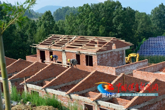 近日,工人在马良镇赵家山村易地扶贫搬迁集中安置点二期项目建设现场施工。该安置点二期项目预计10月底竣工,可安置23户入住。