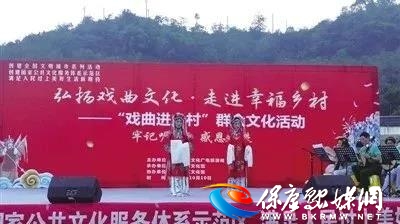 尽管小寒是最冷的时候,雨雪纷飞,但大家看戏的热情不减。舞台上铺着鲜红的地毯,背景幕布上醒目地喷绘着主题标语:“我们的中国梦、文化进万家”——荊楚“红色文艺轻骑兵”走进保康。大家一看,原来是湖北省委宣传部、省文化和旅游厅组织开展的文化惠民、送戏下乡活动。