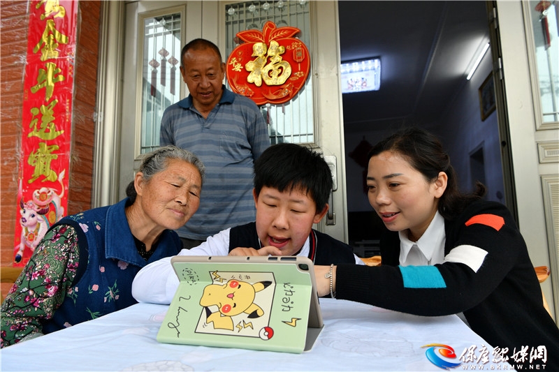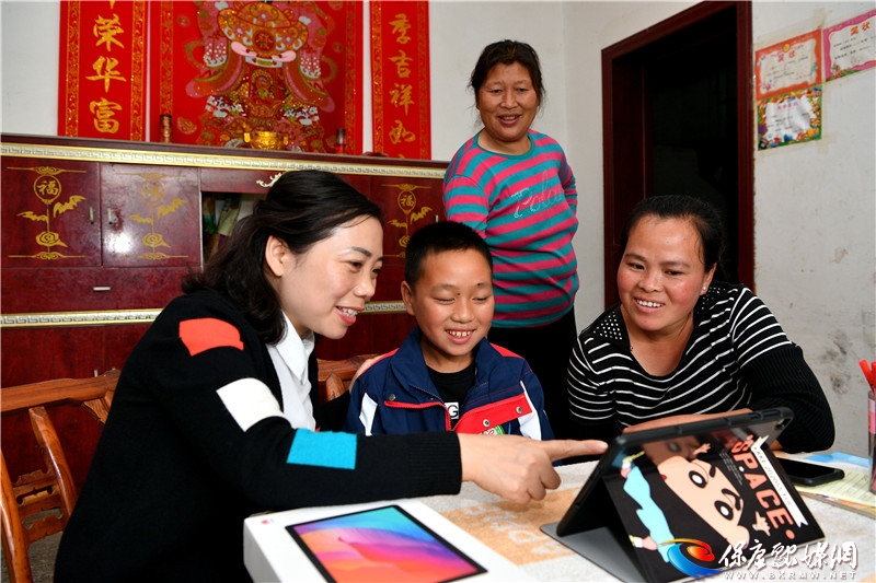 5月13日,笔者在马良镇八斗坪村看到,县特殊教育学校教师正在指导一名肢体障碍儿童使用平板电脑上网络直播课。