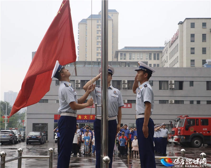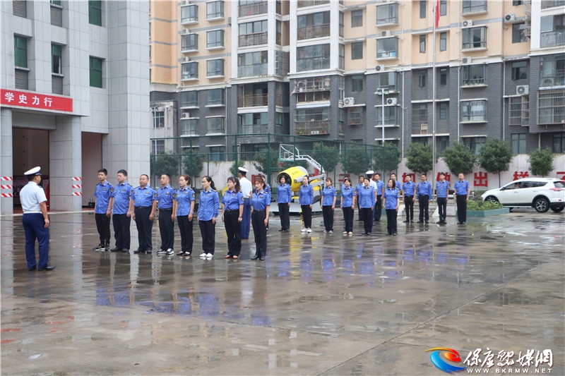 县城管执法局举行了隆重的升旗仪式,该局干部职工和消防队员以及小朋友们面对国旗庄重敬礼并奏唱国歌。消防队员按照纪律部队的标准对城管执法局的职工们进行军训,并讲解了火灾报警、火灾初期扑救处置、提高火灾隐患排查能力等知识,现场教学了灭火器的使用方法。