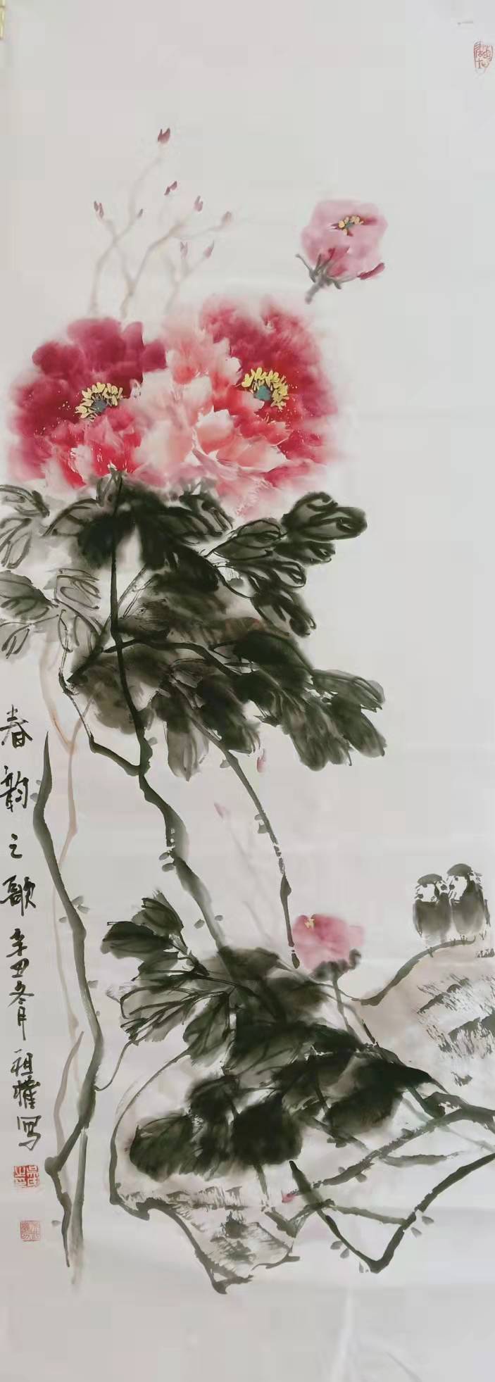 牡丹花作为花鸟画中最为重要的素材,不管是工笔画还是写意画都不能缺少了牡丹而独立存在,牡丹有着美好的象征,更有着美满的寓意。牡丹多富贵,不仅仅被古代诗人画家所喜爱,就是现代人对牡丹也是爱不释手,喜爱牡丹不仅仅是其花朵硕大,高贵艳丽,它更是画家们情感与精神的寄托。