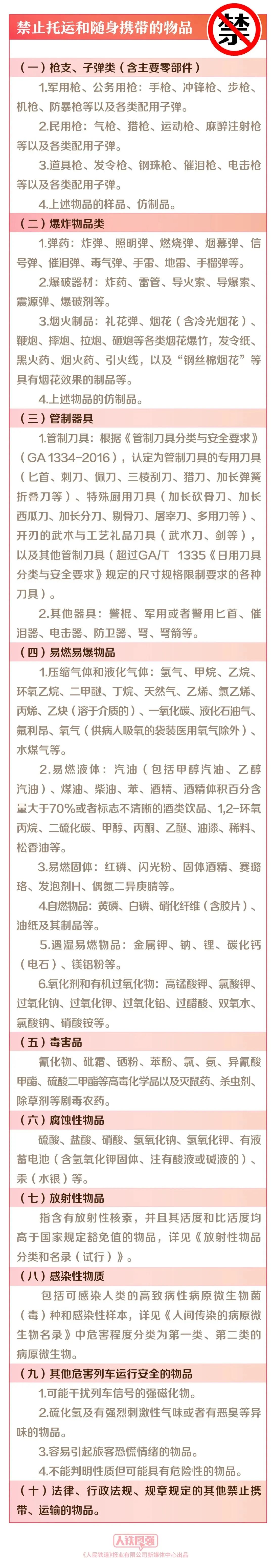 《铁路旅客禁止、限制携带和托运物品目录》